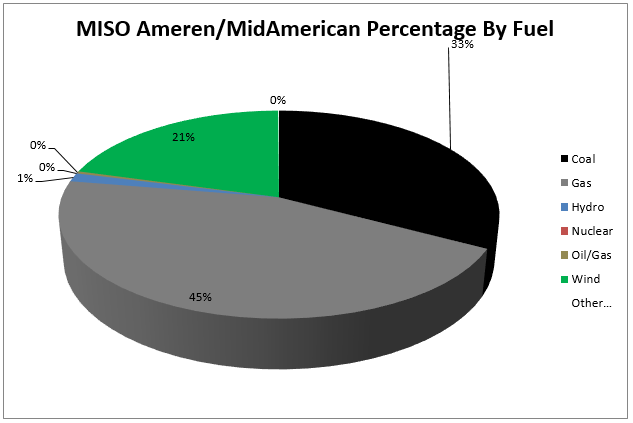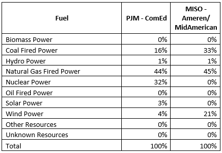 The average nitrogen oxide, sulfur dioxide, and carbon dioxide emissions for PJM and MISO are approximate benchmark emission levels for all electricity generation in those regions. Data used to calculate the emission profile came from PJM-EIS and Ameren-EIA.gov. Carbon dioxide is “greenhouse gas” which may contribute to global climate change. Nitrogen oxide and sulfur dioxide released into the atmosphere react to form acid rain. Nitrogen oxide also reacts to form ground level ozone, an unhealthful component of “smog”.